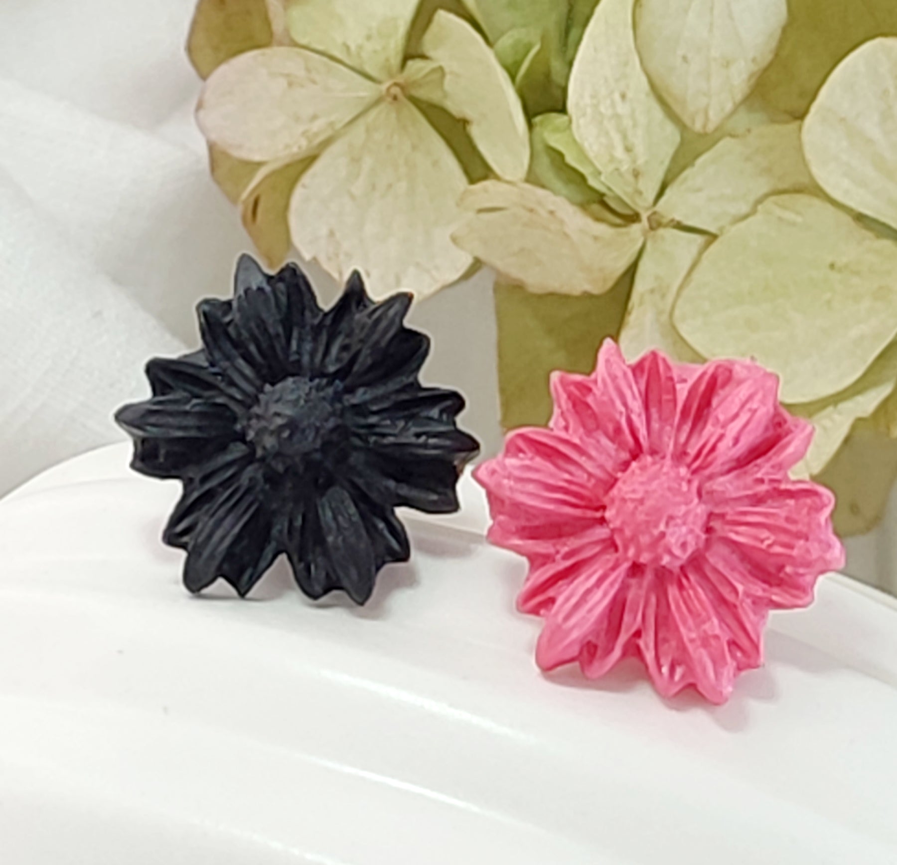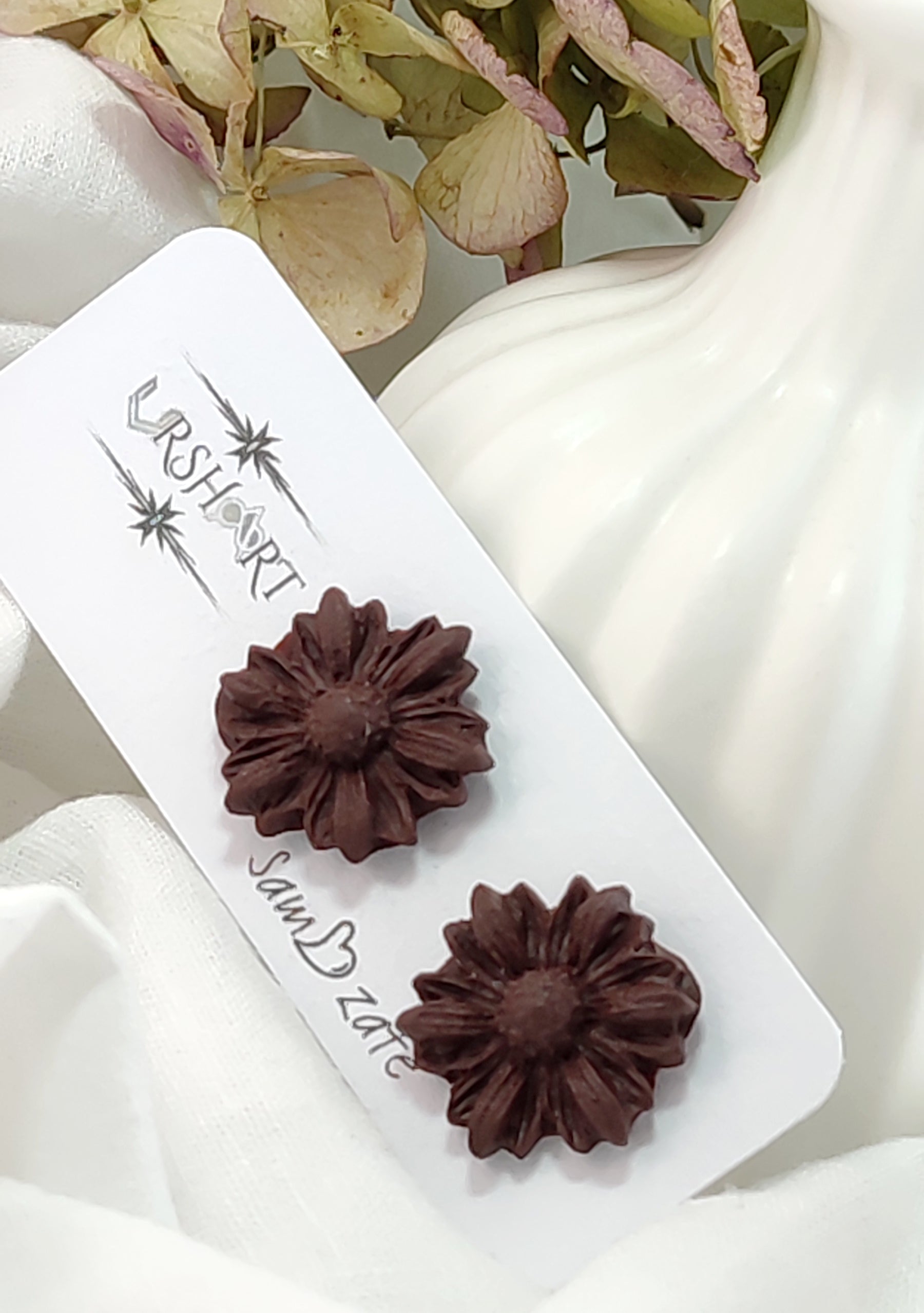 Add a touch of nature-inspired elegance to your accessory collection with our handmade polymer clay earrings. These stunning earrings are crafted in the shape of vibrant pink, black or brown flowers, each featuring intricate petal details that capture the delicate essence of a blooming flower. Perfect for any occasion, these earrings are sure to make a statement.