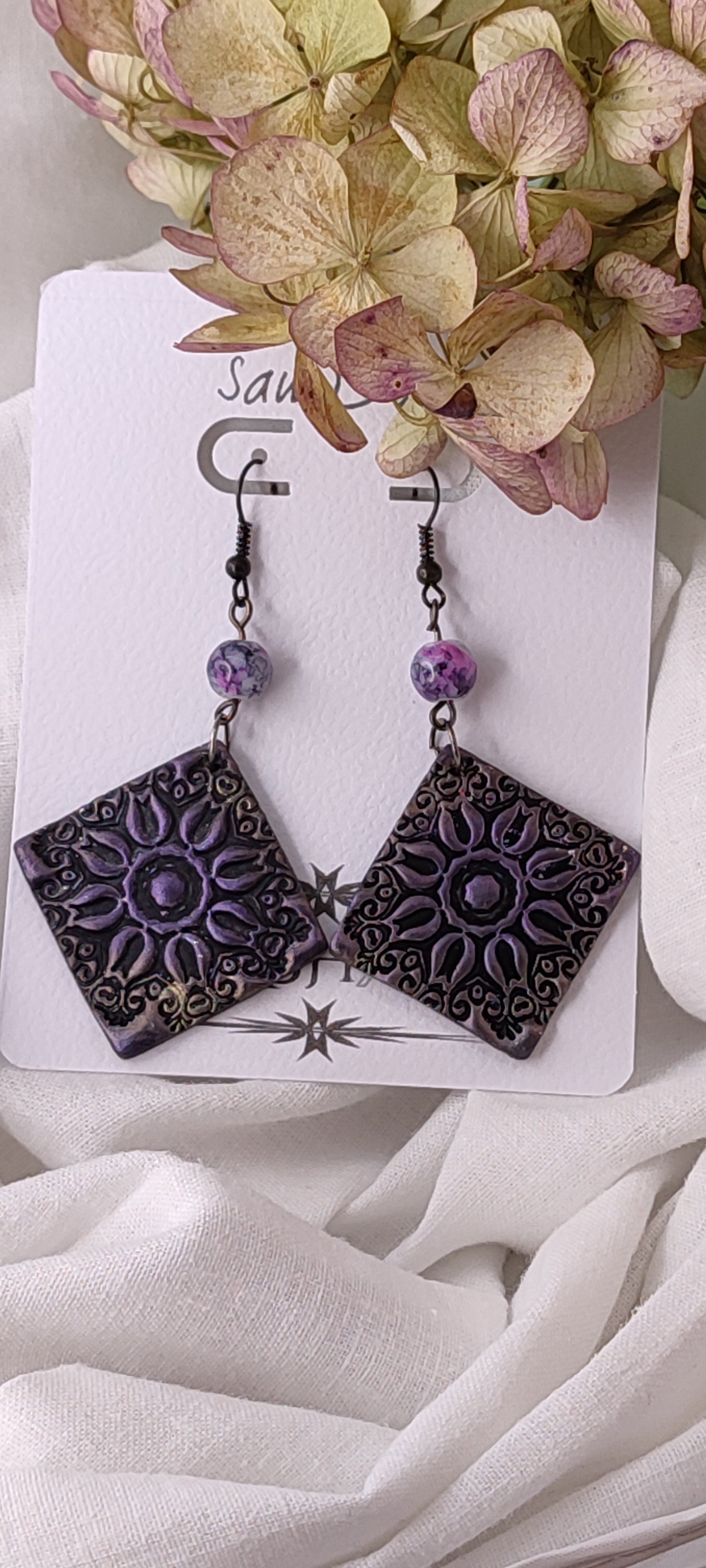 Handmade Polymer Clay Earrings - Purple, Black, and Silver