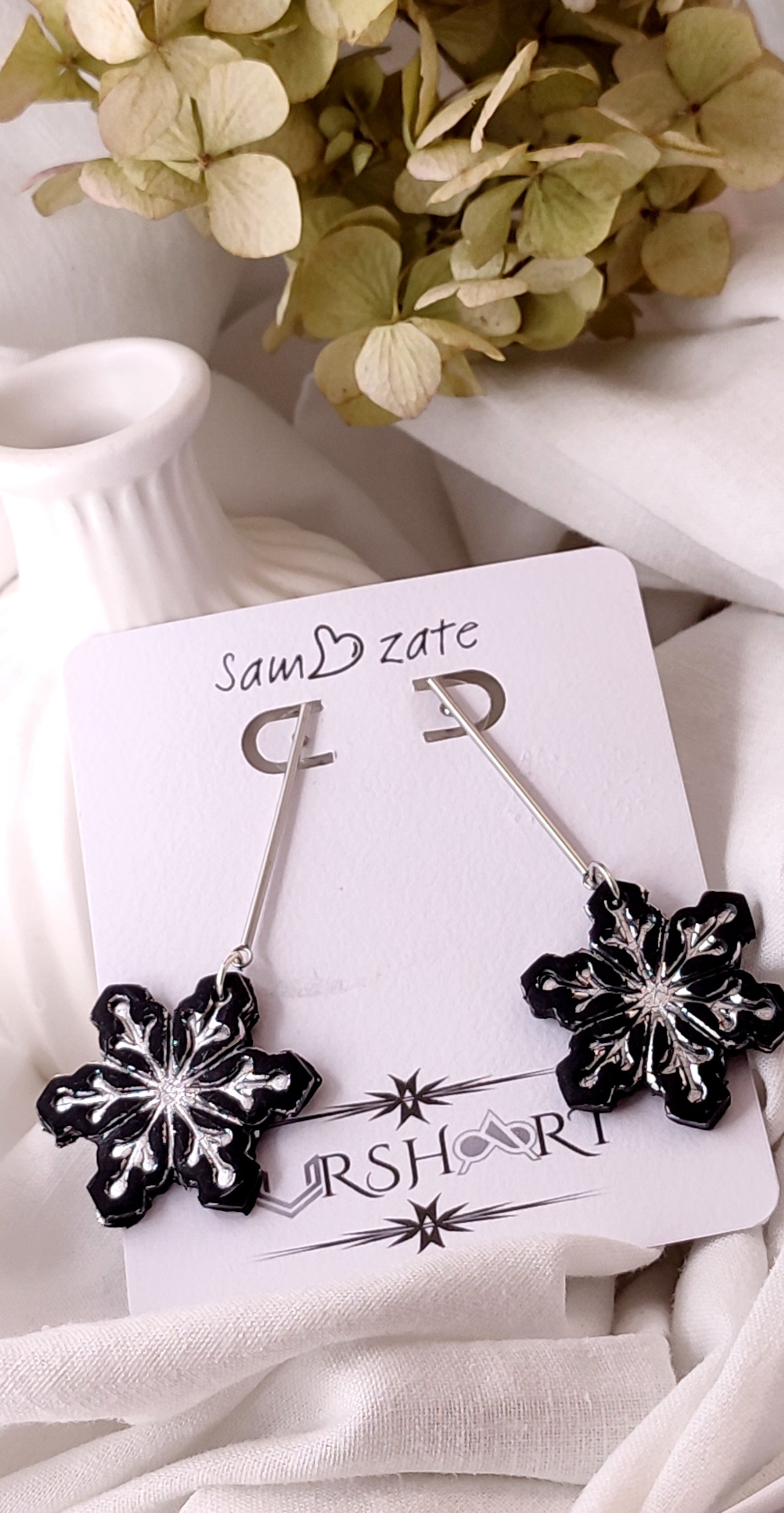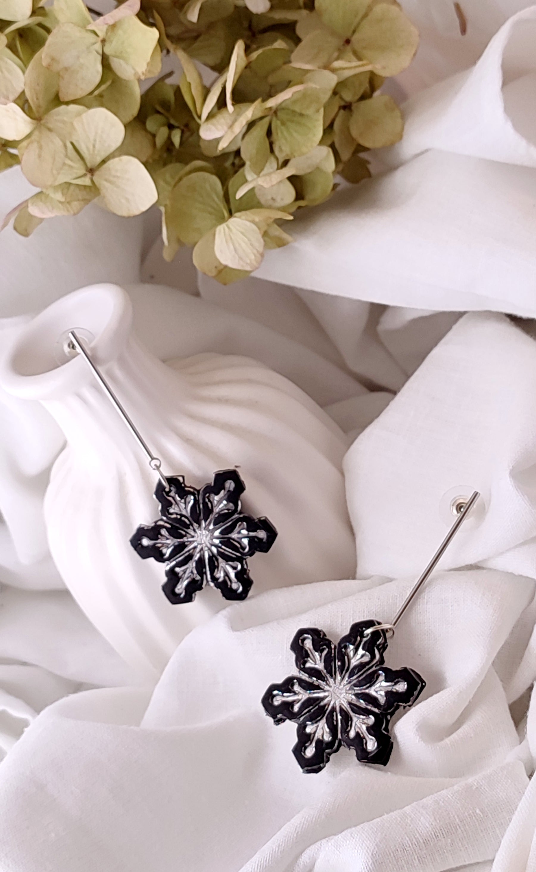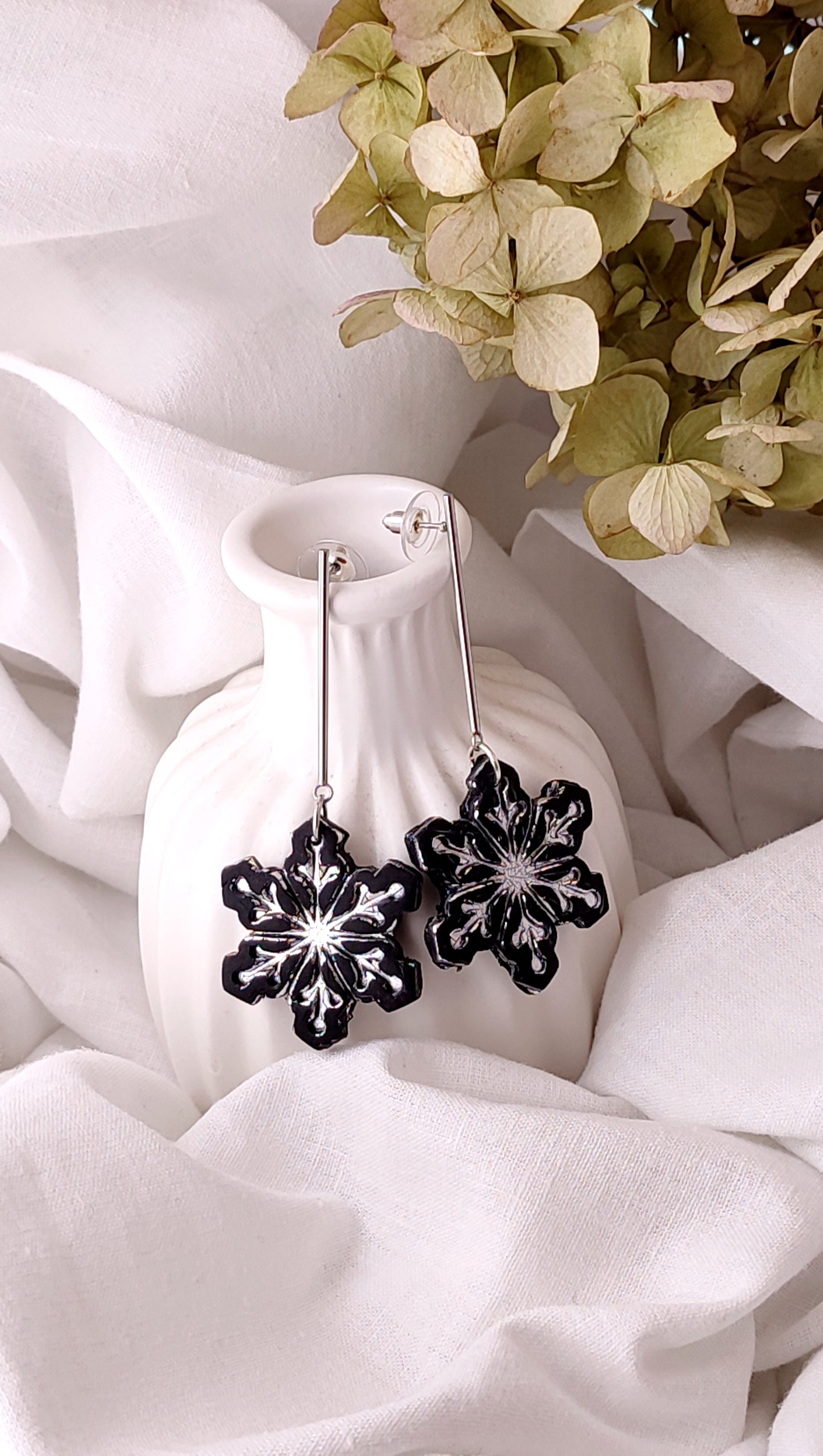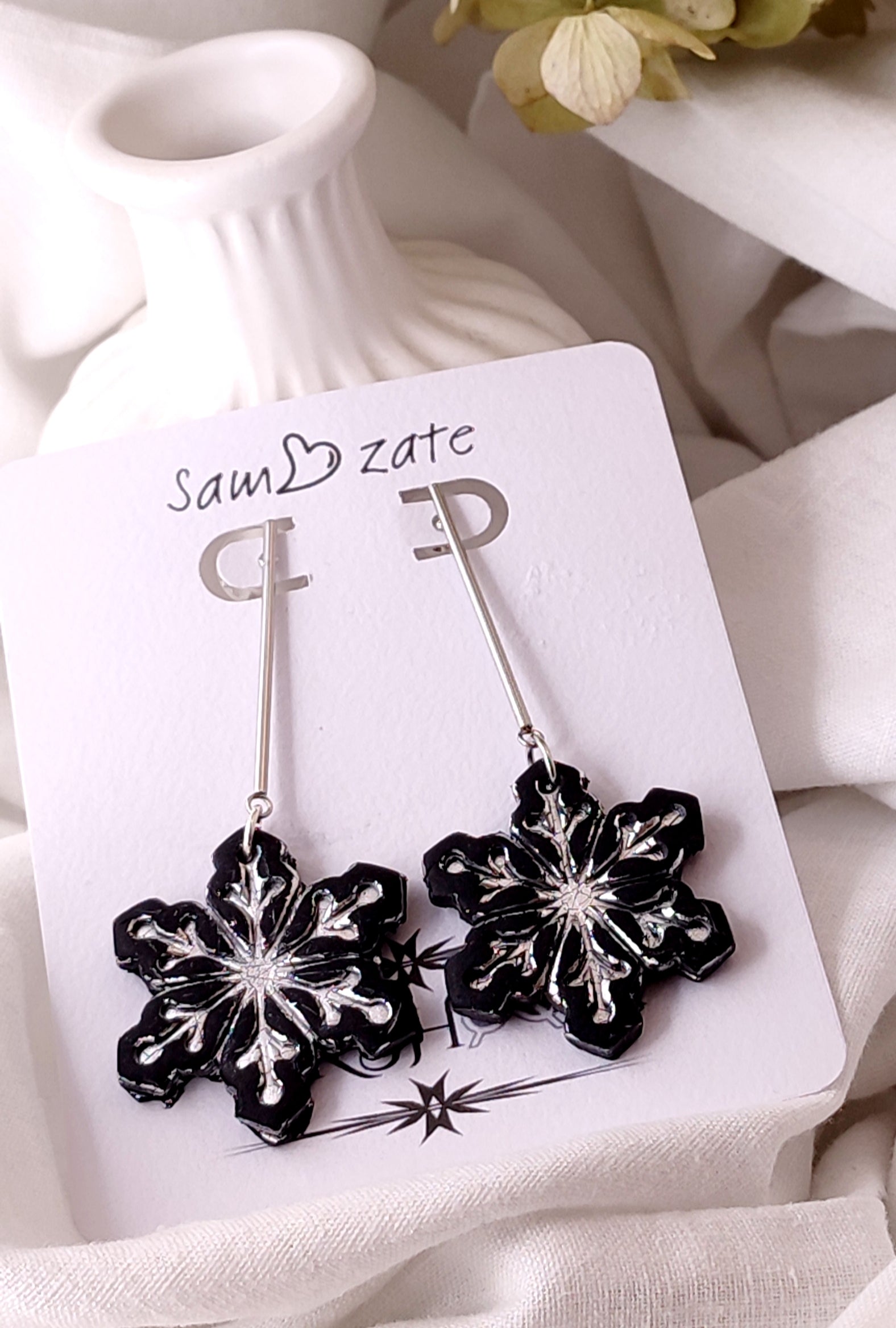 Handmade Polymer Clay Earrings - Silver and Black